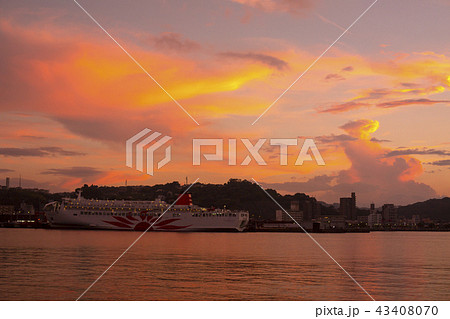 西大分港のフェリーと夕焼