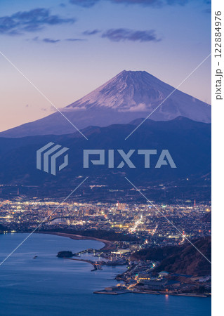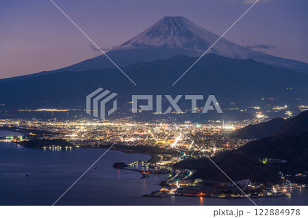 (静岡県)発端丈山から眺める沼津の街並みと富士山・夕景