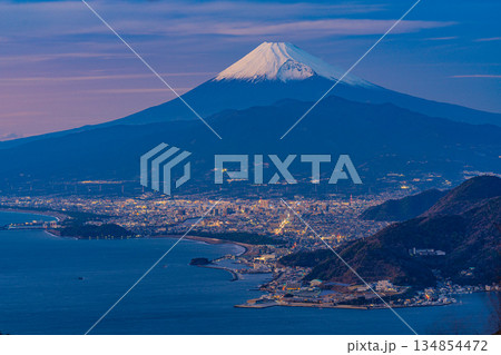 (静岡県)発端丈山から眺める沼津の街並みと富士山・夕景
