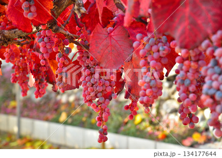 《山梨県》赤く色づいたブドウの実