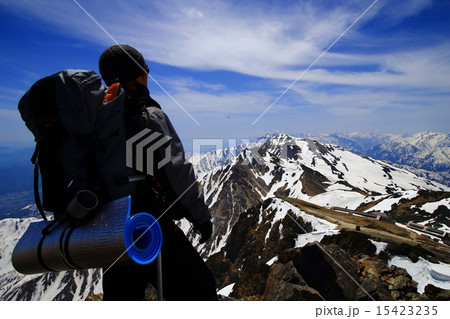権現岳山頂に立つ登山者 山頂 八ヶ岳 男性
