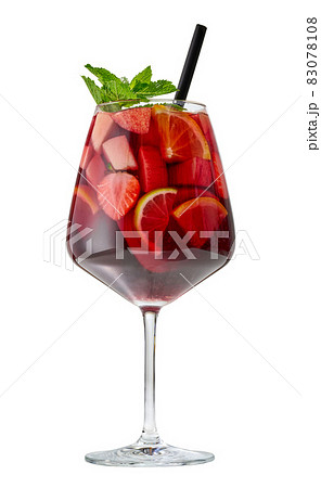 Refreshing Summer Citrus Fruit Sangria in crystal glass isolated on white background