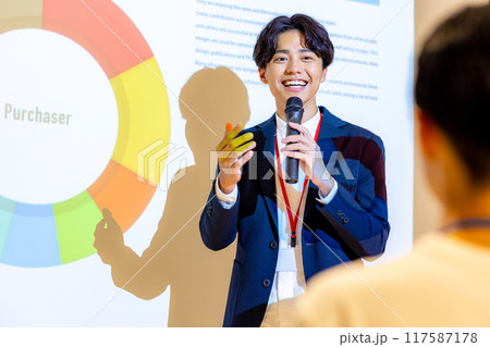 プレゼンする若いビジネスマン