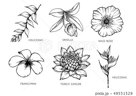 Collection of Tropical flower drawing illustration