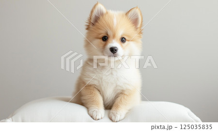 ふわふわの毛並みが魅力的なポメラニアン子犬 | 柔らかな光