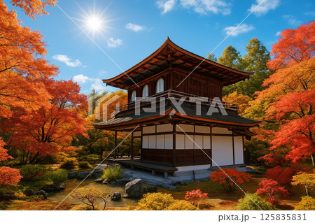 京都 銀閣寺のモミジの紅葉
