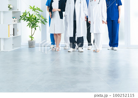 病院を歩く医療従事者のグループ 医師 看護師