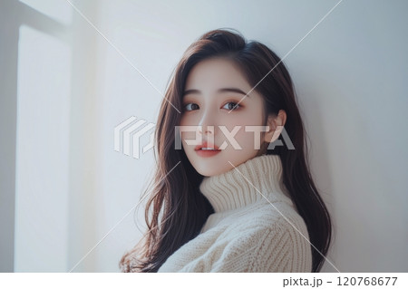 柔らかい光に包まれた、健康的で親しみやすい表情の女性