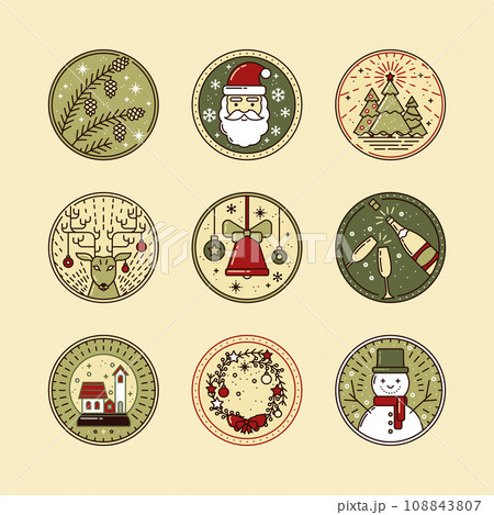 Christmas Icons Set with Snowflakes, Christmas tree, Champagne, Santa Claus, Deer, Wreath, Snowman, Snow Ball in Flat style. For business, holidays, Vector illustration