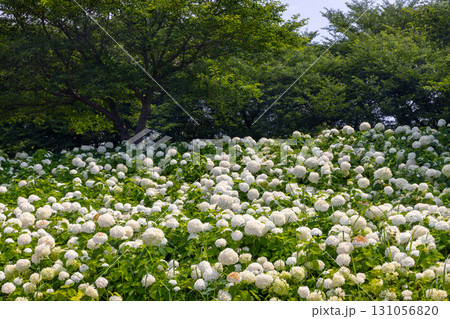 埼玉県幸手市内国府間 紫陽花の名所県営権現堂公園 白いあじさいアナベルの斜面