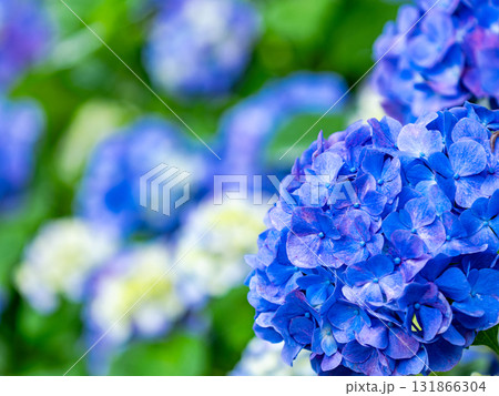 梅雨時期の景色 美しいアジサイ ガクアジサイ青系統