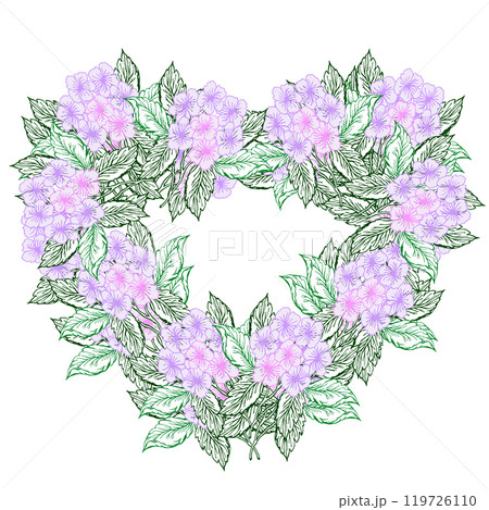 Floral heart frame, hydrangea spring flower for design of card or invitations