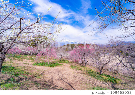 【富士山素材】早春の富士山と梅の花【静岡県】