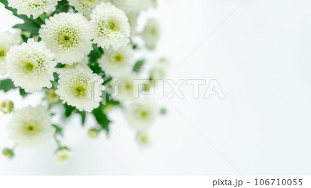 白い小菊の花 ポンポンマム スプレー 仏花 コピースペース 白背景