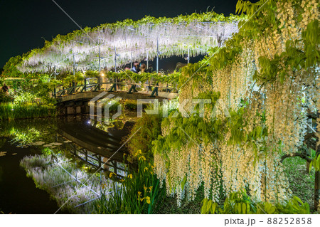 あしかがフラワーパーク 白藤 うす紅橋 ライトアップ (栃木県足利市) 2018年4月