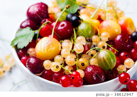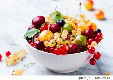 Assortment of fresh berries in white bowl