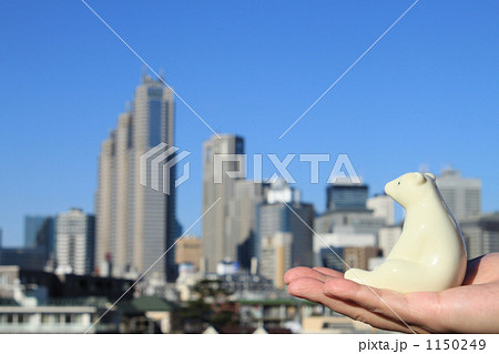 高層ビルとシロクマ