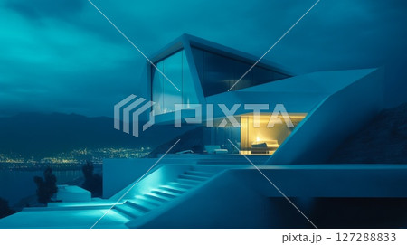Modern, Futuristic House Perched on Cliffside at Night