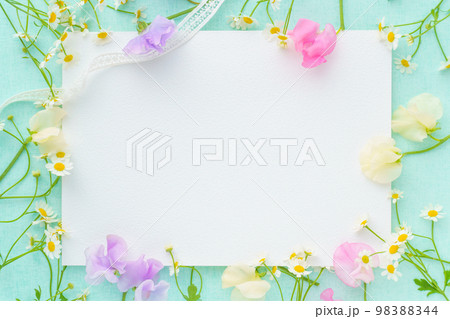 ミントグリーンの縁取りの春色のフラワーフレーム
