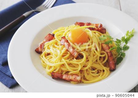 卵黄が乗った美味しそうなカルボナーラ