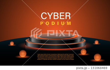 Realistic orange neon black metallic podium stage technology futuristic style design modern for product presentation background vector