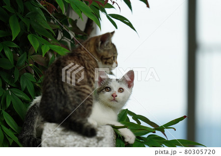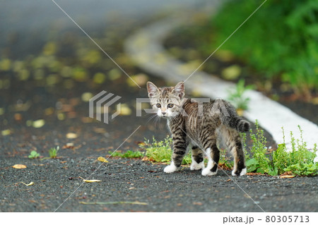 暖かい季節 野良猫の可愛い子猫兄弟が元気に遊ぶ