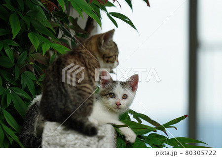野良猫の可愛い子猫兄弟が活発に動き回る