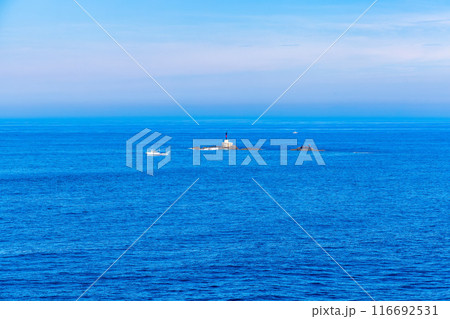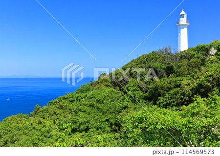 快晴の大瀬崎灯台と断崖 五島列島 福江島 長崎県