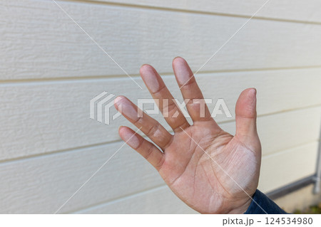 建物外壁トタンの塗装面の調査 チョーキング現象