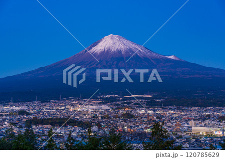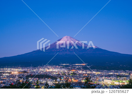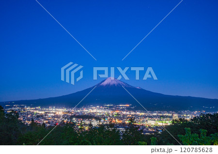 (静岡県)白尾山公園から眺める、富士宮市街の夜景と富士山