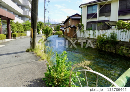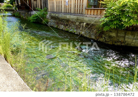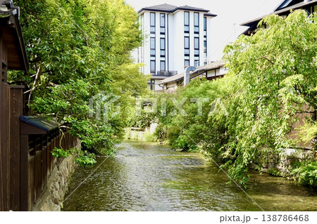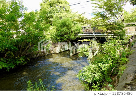 京都 白川筋の石泉院橋付近から白川の流れを見た風景 京都市東山区