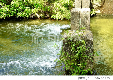 白川児童プール跡の遺構と白川のせせらぎ。(京都市内)