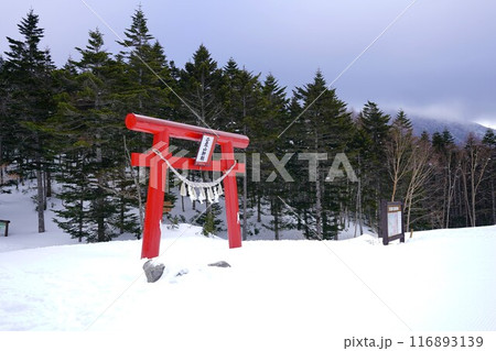 冬季日光白根山の二荒山神社の鳥居