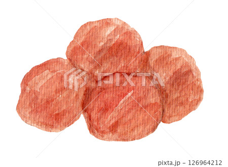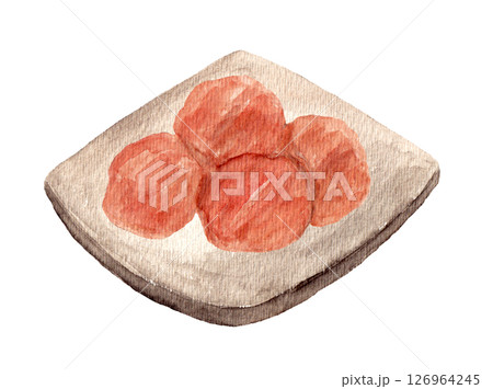 盛り付けた白梅干しと紫蘇漬け梅干しの手描き水彩イラスト