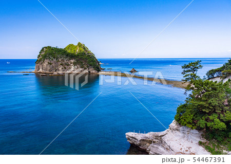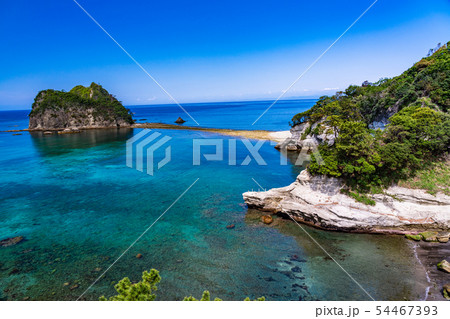 堂ヶ島の瀬浜海岸・三四郎島 トンボロ現象(静岡県西伊豆町)
