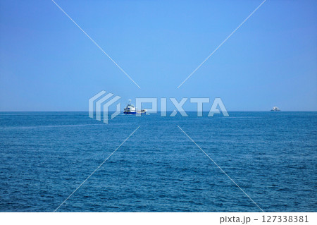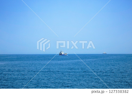 青い海と漁船