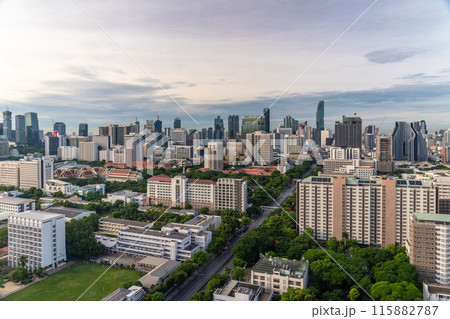 Timelapse view of Bangkok busy cityscape with moving clouds and high-rises buildings