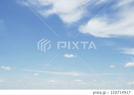 Blue sky with beautiful white clouds. Sky with cumulus and cirrocumulus clouds.