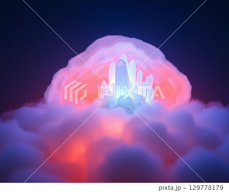 Celestial Crystal Formation Amidst Ethereal Cloudscape Illumination
