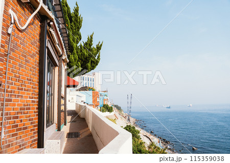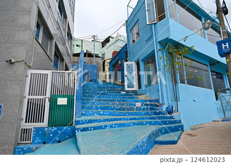 韓国 釜山 ヒンヨウル文化村 海 青空 街並み