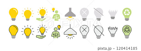 ひらめきのピクトグラム・アイコンセット(電球、発見、light bulb)/カラー、イラスト風