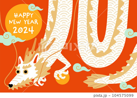 2024 年賀状 赤背景と辰