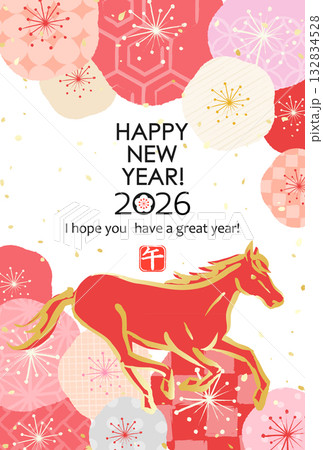 日本の2026年賀素材 いろいろな柄の梅の花模様に馬