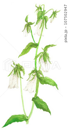 釣鐘状の白い花 キキョウ科ホタルブクロ