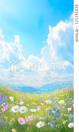 Sky of pure serenity, blooming with springtime beauty, This dreamy background features soft, blurred sunshine against a vibrant blue canvas