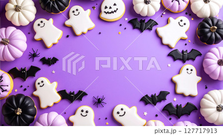 ハロウィンのフレーム 可愛いおばけクッキー かぼちゃ コウモリ