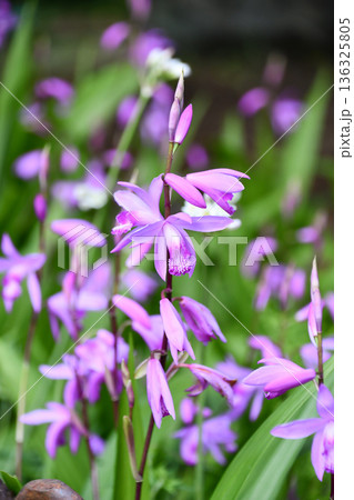 白と紫色のシラン(紫蘭)の花