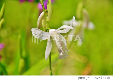 白色の紫蘭の花