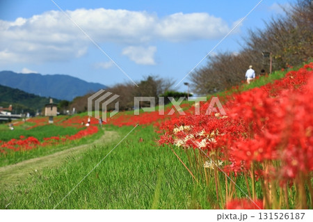 埼玉県比企郡吉見町 カラフルな曼殊沙華(彼岸花)が咲くさくら堤公園 マンジュシャゲとアゲハ蝶