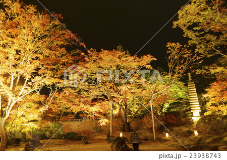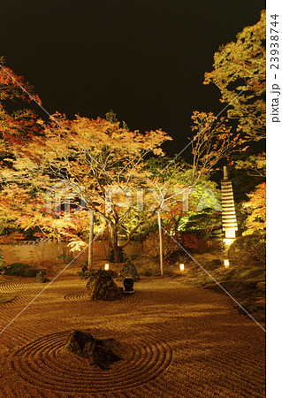 円通院鮮やかな晩秋色鮮やかな紅葉がライトアップで浮かび上がる美しい石庭園
